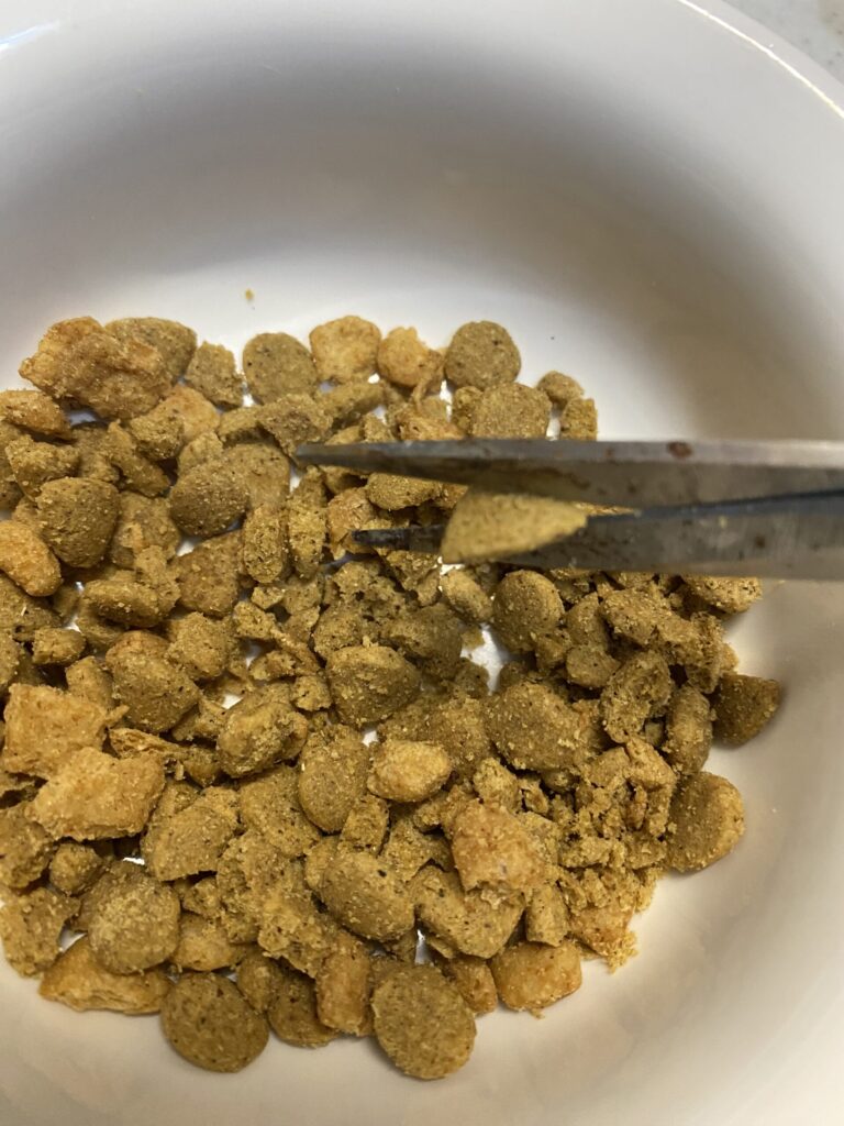 量を減らすのはかわいそうだったので朝だけ以前のピュリナワンに戻したけど粒が大きいので砕いてあげることに。
