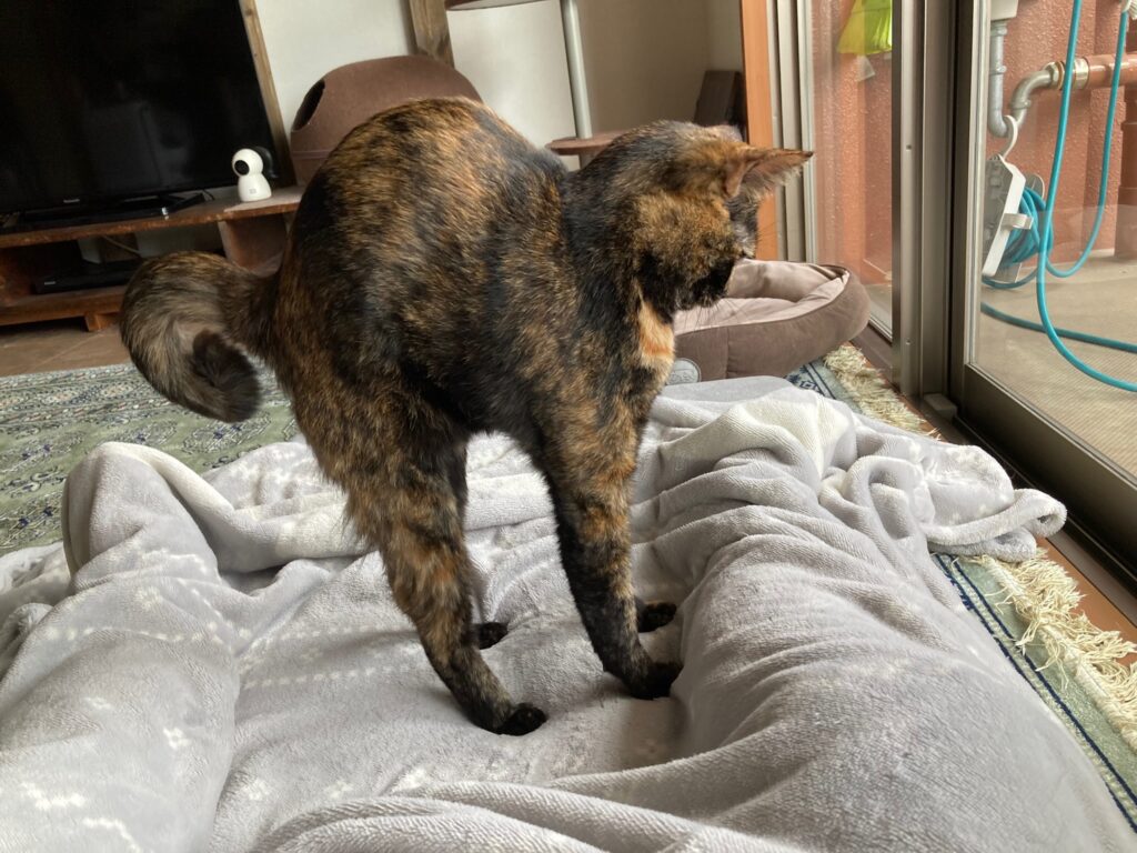 寝ていた花ちゃんも起きる。豆助は起きない。